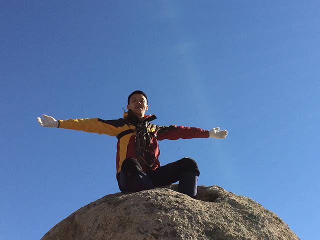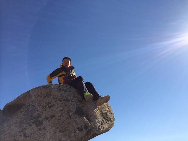 下棋亭拍照返回,路上就发现了一个悬崖边的大石头,冒险上去拍照,拍了下去正准备走,结果被某电视台拍宣传片的在上方看见了,觉得位置还可以,就非要说喊我再上去,协助他们拍一下,费了老半天劲,拍了好几条才过了,但是因为一直在上面坐着,看久了真还有些害怕,又没安全锁,只不过也都安全的度过了。