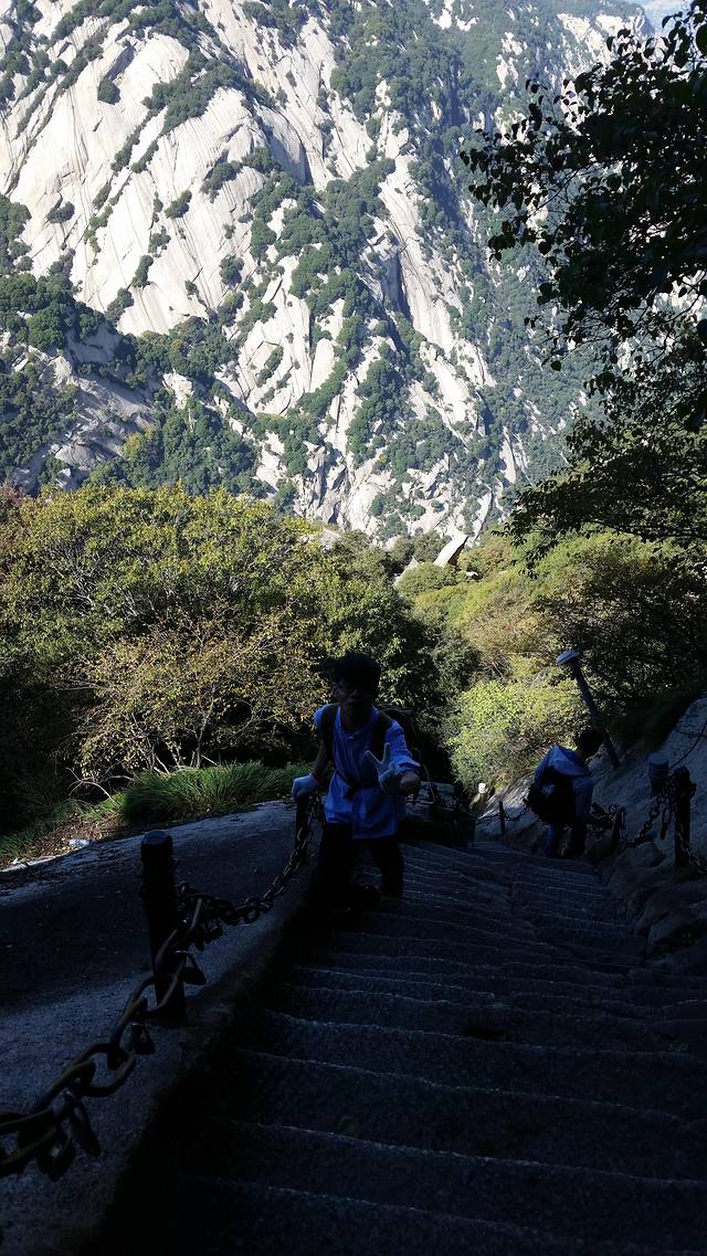从长空栈道出来已是下午四五点了(之所以我没像其他攻略一样详细写时间,就是因为这样根据自己的体力和时间来考虑,多休息肯定是有好处的,我经常运动,最后因太快,膝盖还是很疼的,今天看了旅行的目的到底是什么,是一定要达到某个地方吗,是拍了照回去给其他人炫耀吗,这个就要自己在旅行中思考了),出栈道,我们四人就前往西峰。