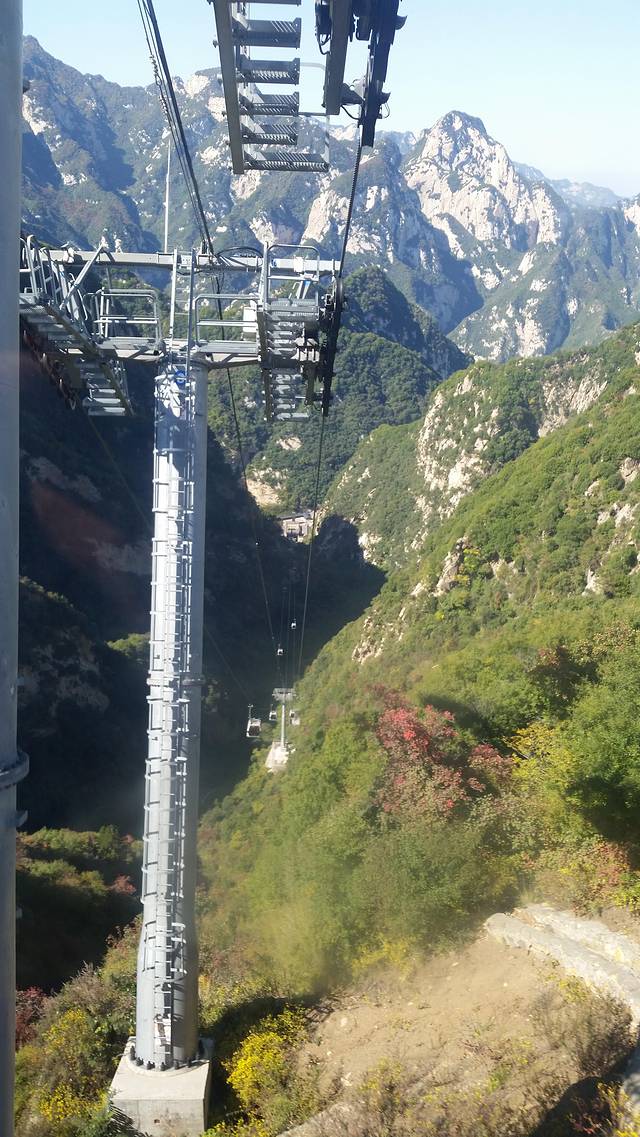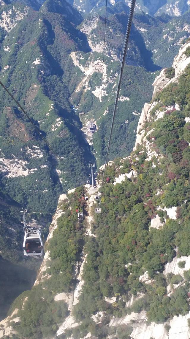 我们三人出东蜂直奔西峰索道,西峰索道价格还挺贵,140元一位,只不过路程很长,风景不错,还是比较值的。这里又要说一个防坑要点,进索道前会要给你免费合影,千万别说自己和同行的是一起的,单独照,下去单独拿一张书签是免费的,你要大的照片是收费的,所以你要是集体行动,给你拍张集体照,书签还不够你分的。想想这么多样片没人要也是醉了。现在大家都可以自己照相,已经不是原来那个照相机也是大家电的时代,真的不畅销。