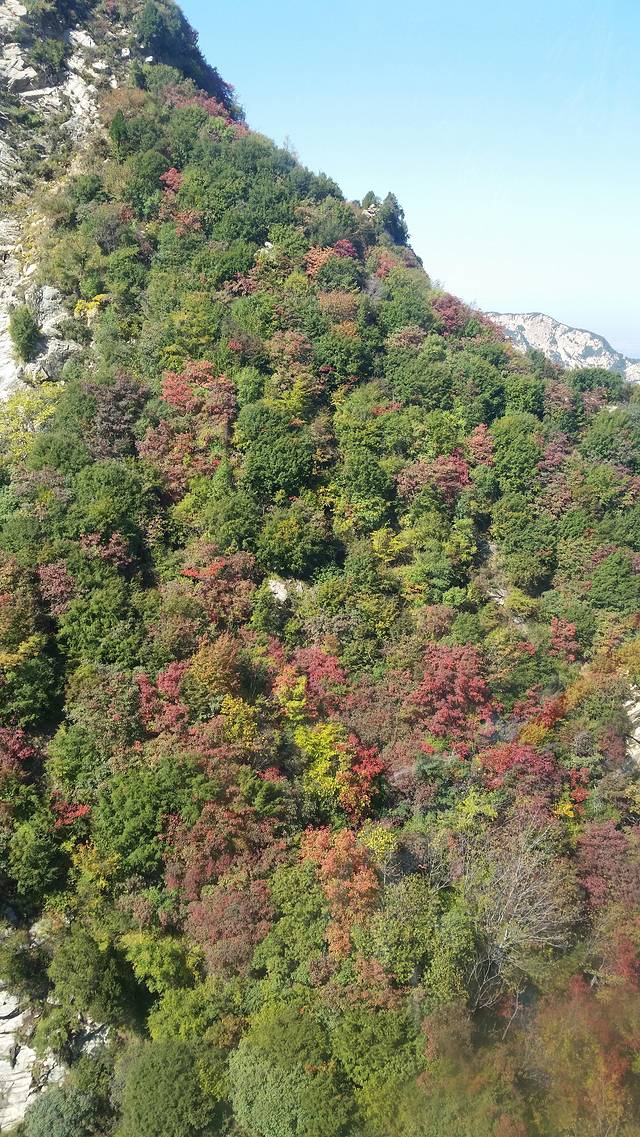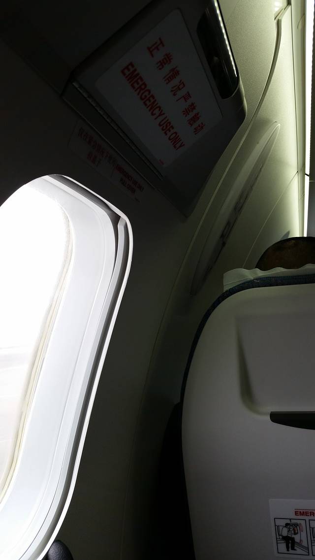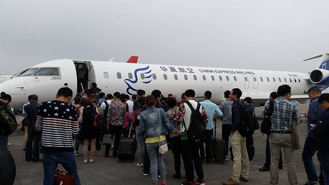 2015年10月9日6时,我如期按照预定计划赶赴重庆江北机场乘坐华夏航空的G52657次航班,这架航班本来是早上6点45分出发的,按照这个时间本来我会在半夜四五点起床赶赴机场的,结果前一晚票务公司通知,由于西安机场大雾天气或者是航空管制等原因起飞时间延迟到8点40分,这样我就改成早起乘坐六点多的轻轨赶赴机场了。但其实我原计划预定6点多的飞机,乘坐1个半小时抵达西安的初衷,就是为了9日有充足的时间完成我在西安的主题行活动。但是既然航班延误了,那也要随遇而安,往好处想,安静的在机场边听歌边等待(推荐一个和此行主题有关的书,叫唐朝穿越指南,喜马拉雅有有声版的)。谁知道一等就等到了十点多才上飞机,抵达西安的时候已然是中午十二点(说一下有些值机岛可能会变更,轻松百度一下就可以了,比如华夏航空的值机岛就在T2A航站楼2B值机岛的,还是14年底刚变更的在网上一查就可以事先知道,而机场也有指标,只要做一个留心的人就能看见)。说到这儿,各位看官容我停一停,说一说华夏这班飞机,你现在所看图片,眼睛所及即飞机所有——确实很小就是了,可我走上飞机一看,结果咱运气好,分到了紧急出口的位置,相较于其他乘客的位置要宽敞许多,但同时能坐到这个位置的自己也要管好自己不要随便乱碰旁边的设施设备。这时坐在我旁边的小哥是个表情高冷的大汉,当飞机起飞我主动向他示好(毕竟我是一人出行,可要多交流,不然也太闷了,而且毕竟陌生人即便是聊得来,也不会和你废话多久的),给他递糖(口含糖片或者咀嚼糖果可以帮助吞咽口水,减轻由于海拔变化,气压变化造成的耳鸣等不适)。开始这大兄弟还拒绝了俺,后来他开始和我聊,说这班飞机太小,如果发生云雨天气可能难敌雷击,我看出了他的担心(这也没啥,有的看客没必要觉得别人咋地,毕竟在高空许多人是不舒服的,更何况本来这班航班购票时写的是中型,结果这么袖珍),我就主动和他继续聊,转移他的注意力,通过聊天我得知了他女友在咱大重庆,两人是同学,现在天各一方,两三个月见一次,这异地恋玩得也是费尽呢,重庆和西安还没有高铁,可不是逼着这大汉回回不是坐长途汽车就是飞机,对他这不可是折磨吗!大汉最后说女友最终会到西安随他生活,满眼都是幸福。同时他也得知我要到华山,他作为一个西安本地人,告诉我年初好像华山发生了一起抢劫案,还好心叮嘱我千万别一个人行动,注意自身安全(后来下机一查,是翠华山,也是陕西的一个4A景区),后来他就沉沉的入睡了,我望这机外,飞机飞得很低,山势绵延,大地红妆裹绿,份外漂亮(只带了手机,关了,不好开没照相),内心不断浮现层峦叠嶂这个成语,不一会儿就到了咸阳机场。(还要补充说我三天行程真的天气不错,艳阳高照,所以出行选天气很重要。)