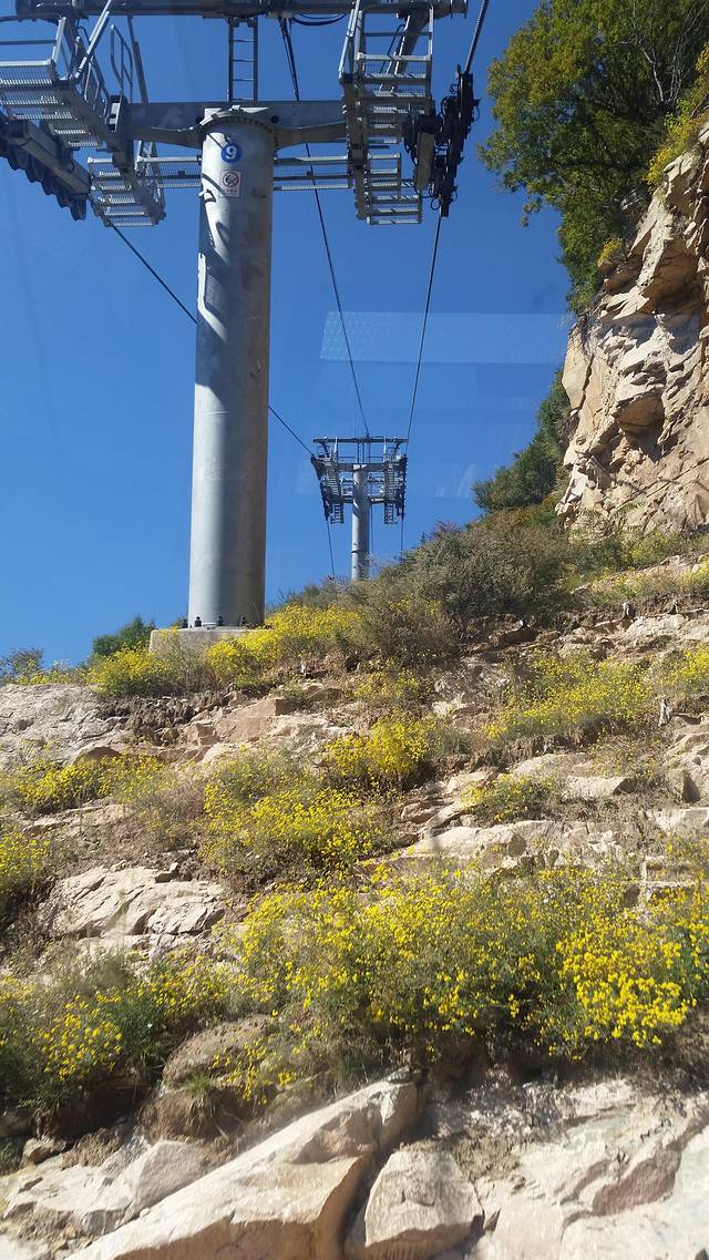 出索道向前继续走就到了景区中转车的乘车点,你可以在这里购票乘中转车到游客接待中心,票价40元,经过盘山公路,十余分钟后就到了游客接待中心,下车穿过宝莲灯的广场就到了公交车停车点,乘坐1号2号公交车免费的就到了火车北站门口。