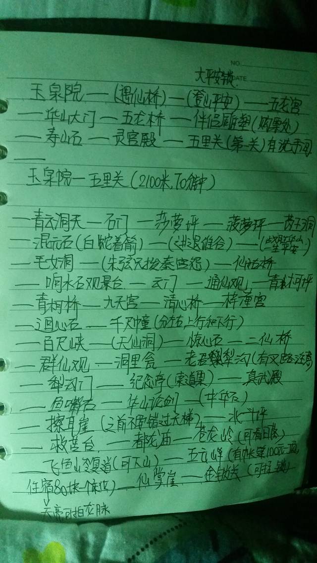 推荐二:推荐一就是早上到华山的推荐玩法,还有一种晚上到的,可以宿在华山景区下,玉泉院和进山门后都有旅馆可以住,进山门那个现在还在修,应该快了,然后就是按照路线一进行(这种可以让你休息好,第二日早点启程爬华山,因为日出和日落感觉都差不多,这种你早点出发,就能在一日之内看完各峰,玩长空栈道和鹞子翻身,然后像猴哥一样坐索道下山,这样一天就结束行程了)。
