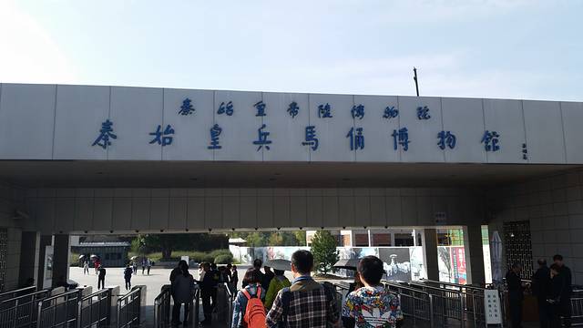 下午14时左右顺利抵达兵马俑站(兵马俑公交站离兵马俑售票点还有一段距离,大概步行七八分钟左右,前提是如果你没走冤枉路的话,因为兵马俑的路标牌不明显,要么被树遮挡要么在转角的位置不容易被发现,反之下车只要你问路就能顺利到达,但是问路可有讲究,首选为明显从景区刚出来乘坐返程公交的游客,其次是公安、保安等人员,三是售卖零用品的摊贩,买包纸巾一元钱也就问了,最好不要问主动上前和你搭话的人员,下面来讲两个傻傻的朋友被忽悠的故事,我在网上还捡了个河南来的朋友,他在路上也捡了个姑娘,但他俩在西安城里耽搁了三点左右才出发前往兵马俑,而兵马俑五点就停止售票了,他两公交下车,就被一黑车师傅顺利“截获”,那师傅说十元钱,顺利把他们送到八大奇迹、地宫和兵马俑各景点的门口,游完一个送下一个,那俩儿傻孩子就信了,他们抵达兵马俑车站的时间是四点,此时临近闭馆了,而此时的我在秦始皇陵里已对他们能够乘车游产生了质疑。后来才知道确实十元钱带他两游了地宫和八大奇迹,这俩地方不收门票,就是一博物馆性质的地方,耽搁了这俩人时间,等到兵马俑售票门口时已停止售票了。这俩就傻眼了。