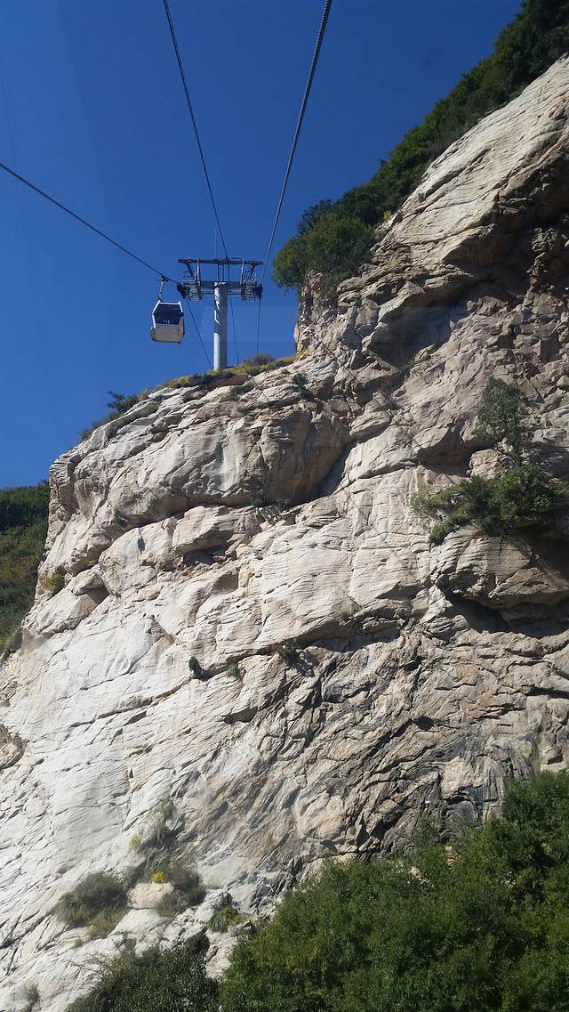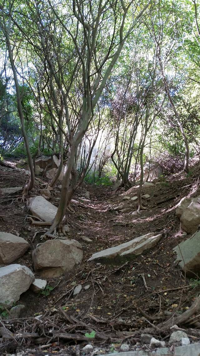下去之后沿石阶小心前行就是下棋亭,许多下去的都说要翻,有点难度,结果我和S哥下去的时候根本没翻,又一问结果是腿太长一脚就迈过去了,除了下去的时候要抓紧锁链,稳下步伐,其他都还好,小L就感受了鹞子翻身的感觉,工作人员说是因为腿短。