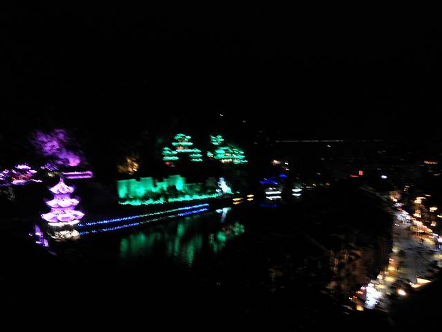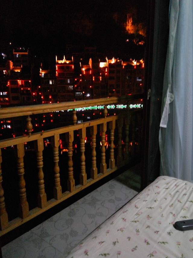 城门洞左拐就是我们住的地方,门很简陋,里面却别有洞天.我们定的是两间江景房,躺在床上古城夜景映入眼帘。