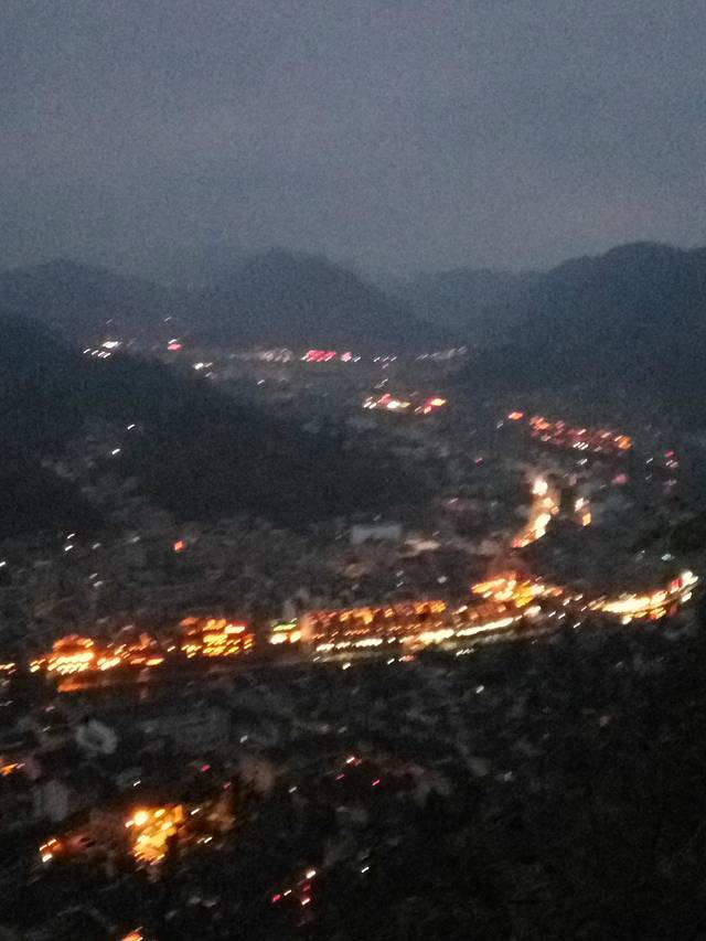 吃完饭,我们回到旅店,休息,准备养足精力,晚上登石屏山。石屏山白天门票30元,下午5点30后就不需要门票。休息到5点半,我们懒,就直接在城门洞口坐公交车到祝圣桥,2元/人。这时候天还没黑,上山全是台阶,爬到山顶20分钟左右。到山顶天天就黑了,看到灯火逐渐点起,山上风很大。一定要带着外套。