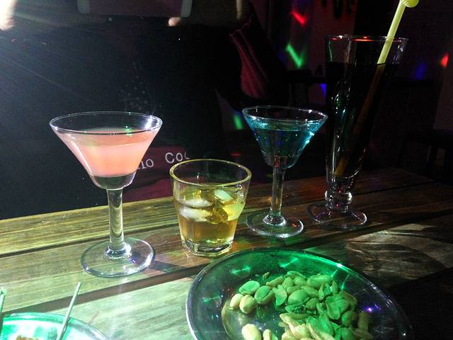 在房间稍做休息,我们就打算出门填饱肚子.苗伯妈红酸汤,直接百度镇远排第一的美食店,肯定不能错过。非常幸运的是,店子离我们住的地方非常近,走路五分钟都不到。我们四人吃了103元,价格非常便宜,叶子类的小菜和饮料是按人头算的,6元一人,其余的都是用不同形状的盘子盛着,价格5到25元不等,但是我的一个朋友吃小菜的时候吃处了一只菜虫,所以清洁度还差了点,味道也就那样吧,不太推荐。吃完后,我们就沿着河边走,打算边走边消化,顺便寻找第二个目的地,酒吧。镇远晚上酒吧还是有很多,我们发现这边的酒吧都很小,就两间房,每间放几张桌椅,一个大屏幕,你可以免费唱歌(我们玩的那家,还有几个穿着校服的中学生在聚会)我们四人点了三种口味的鸡尾酒和一杯威士忌还有一份花生,一共打折后是200元。环境、味道都比较失望,我们坐了不到20分钟就回旅店了。