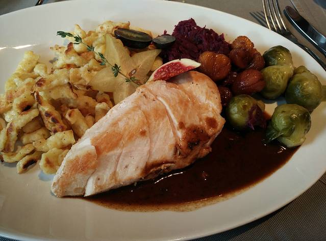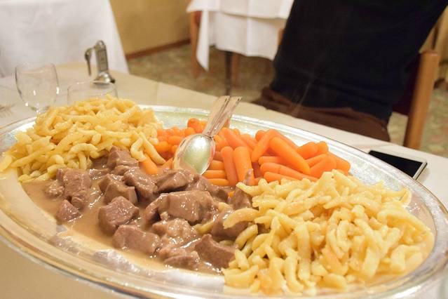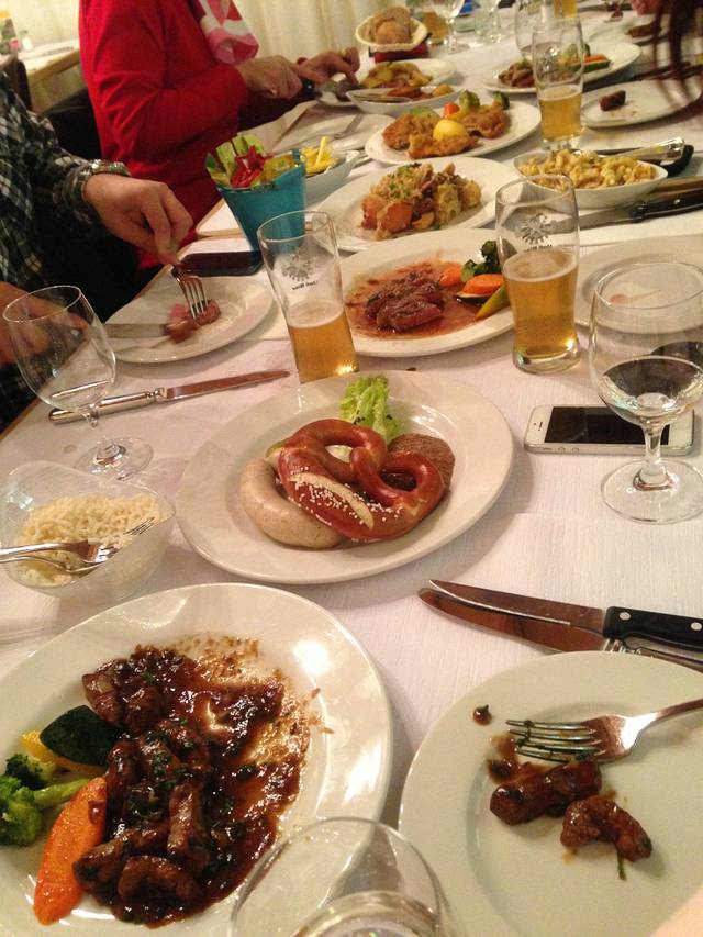 晚餐的餐厅Fischerstube在当地非常出名,原因是他们餐厅会自家酿造啤酒,吃饭前在餐厅老板的带领下,我们参观了餐厅地下的酿酒设备