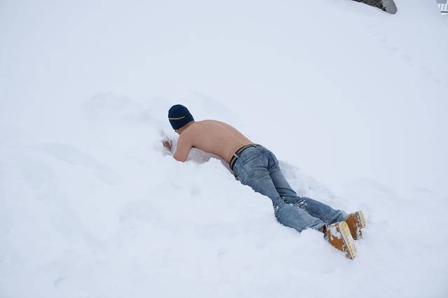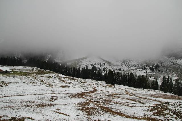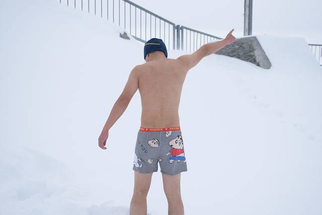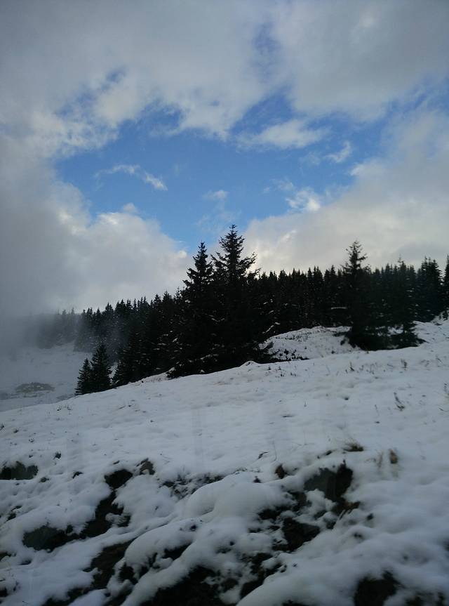 这里就是雪地的分界线,再往上走,就是一片全白!