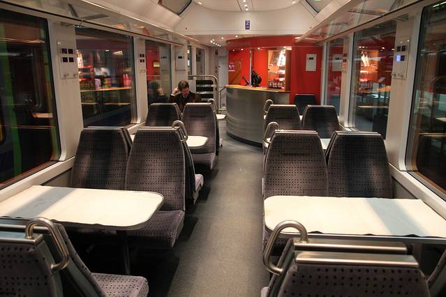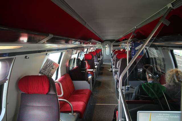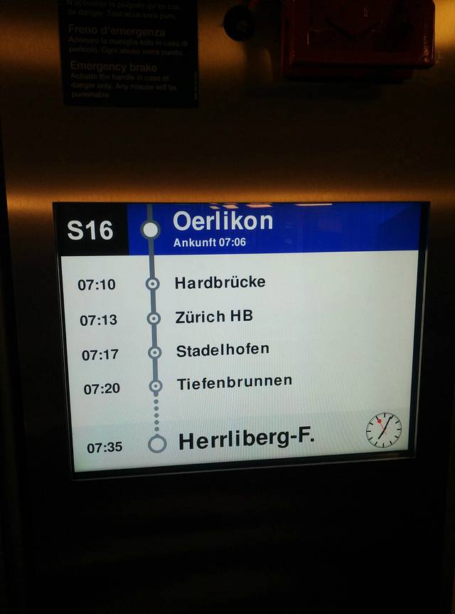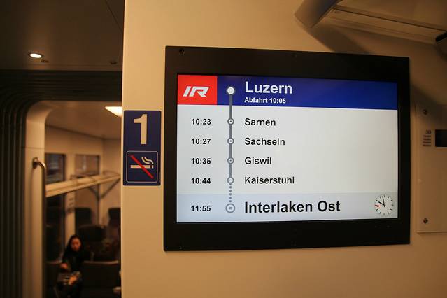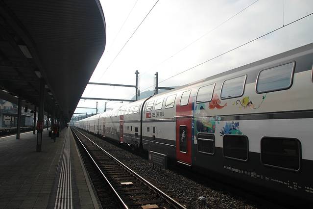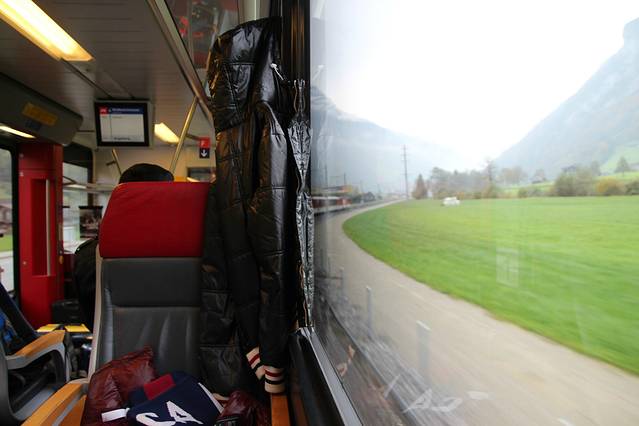 也是通过瑞士通票换乘。车上有时会有人查票,有时没有,检验个人诚信和自觉的时刻到了。