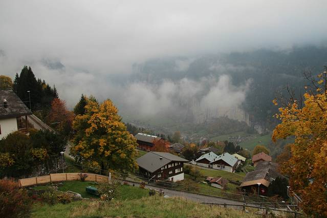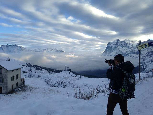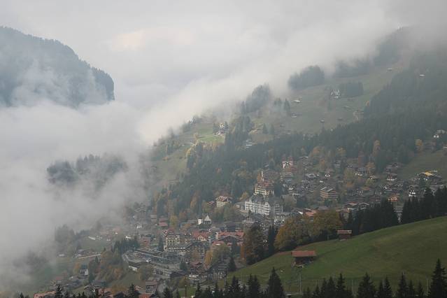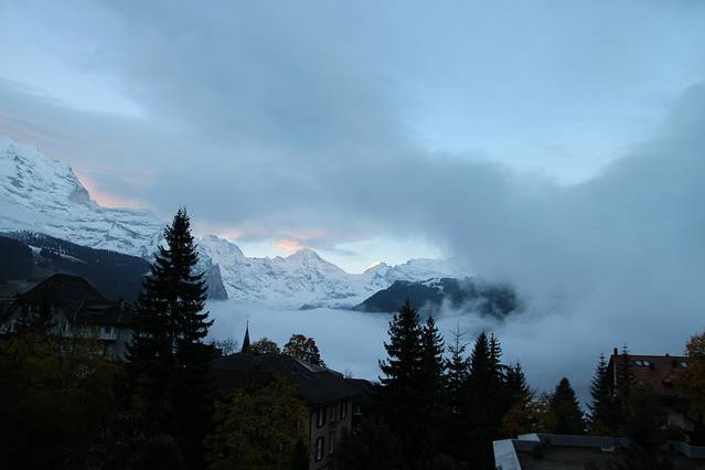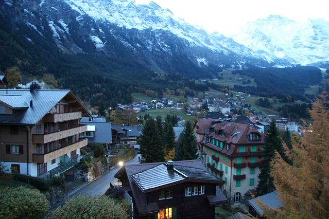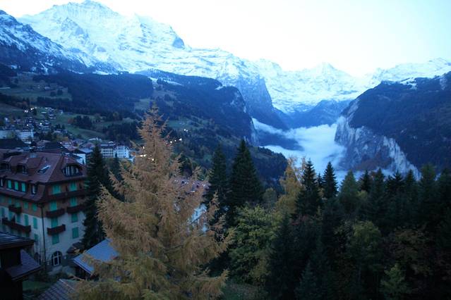 在温根我们会住2个晚上,所以今天不用收拾行李,直接扔在酒店里。早上在酒店阳台看到整个温根小镇以及山下的景色,又被震撼到。