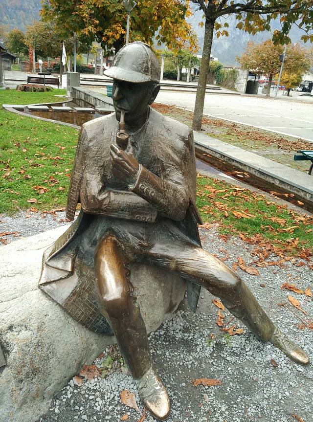 旅游局代表说要带我们去尝试一下在当地已经有100年历史的老字号甜品店Frutal。路上还偶遇到福尔摩斯的雕像,当然要调侃一下。