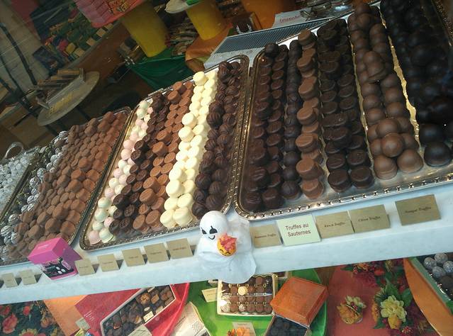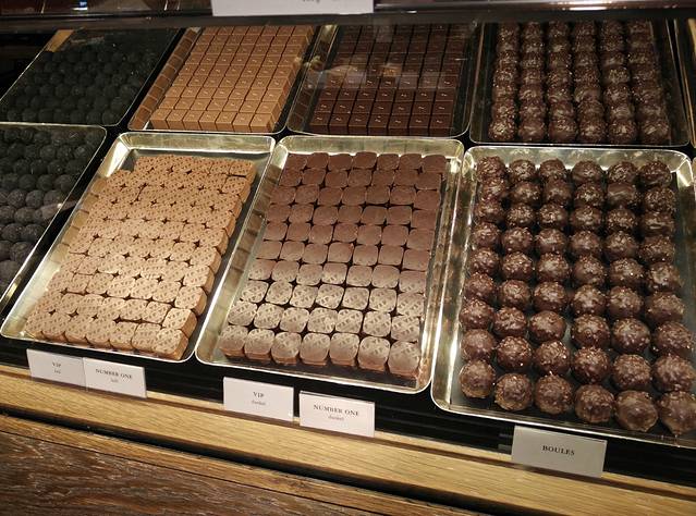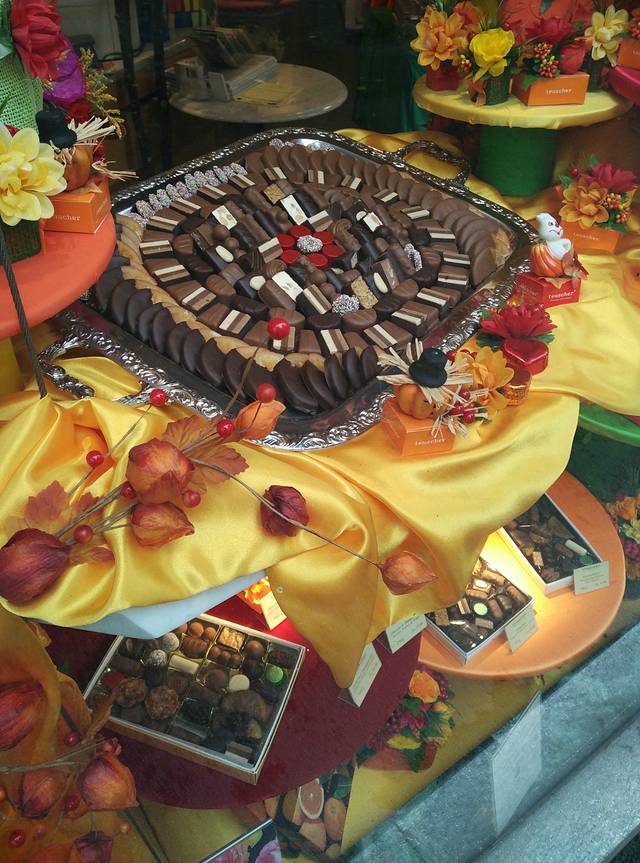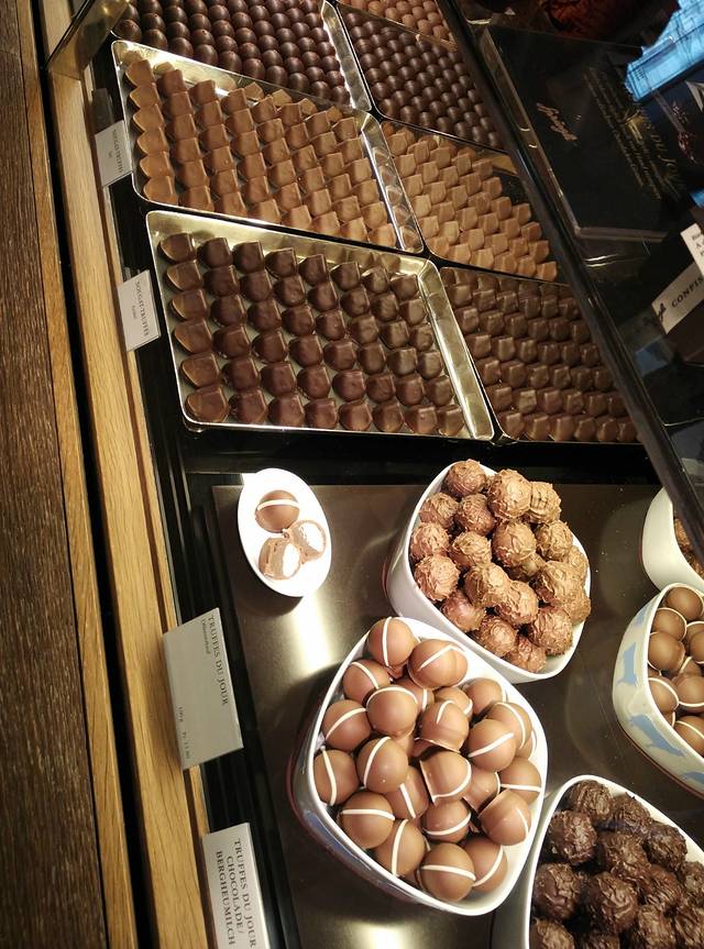 好多店铺都没开门,只能隔着玻璃拍下。巧克力店,还有手工巧克力。