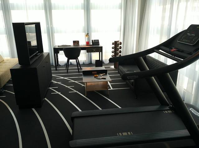 吃完午饭以后,我们也参观一下这家酒店,四星标准,房间比较特别,有像这种带健身房的