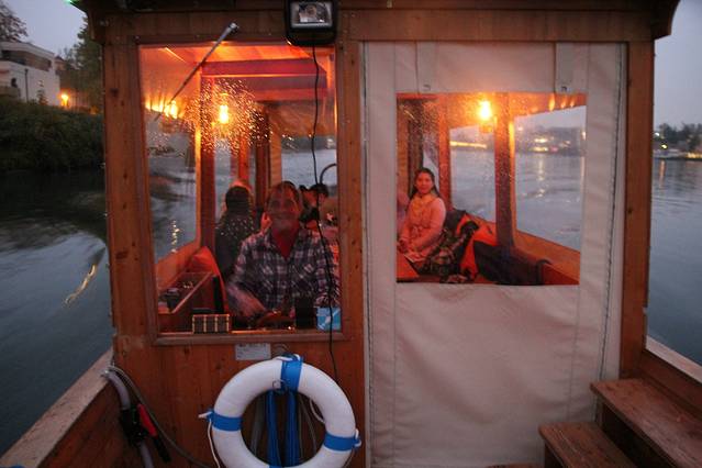 就是身后那部小船,摇一摇灯柱下的摇铃,船就会驶过来。