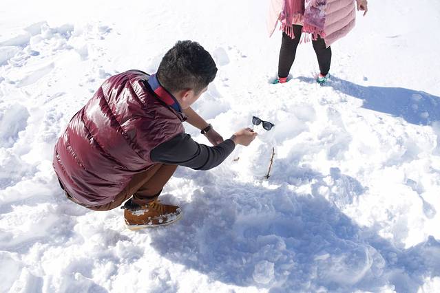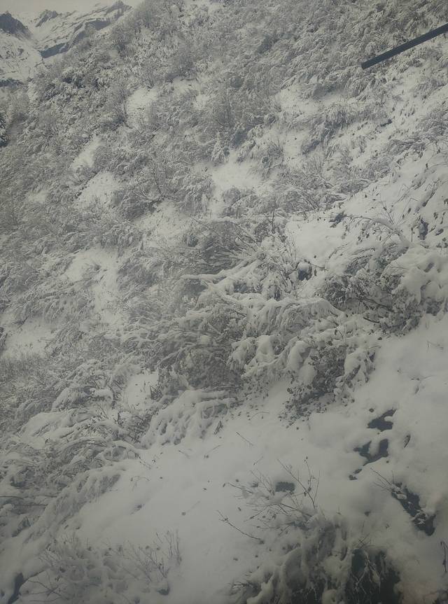 这一段路程,我们的观光车带我们看到的景色从黄到白,再到黄。越往高处走,景色就越白。