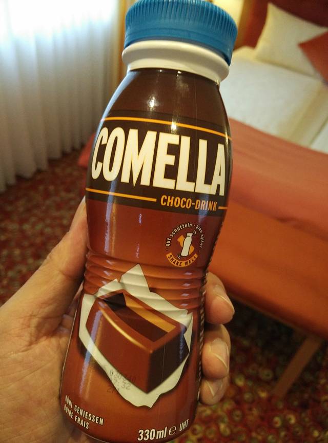 到了巴塞尔火车站,有人在免费派这个巧克力饮料,喝了一口很浓的巧克力味,喜欢!