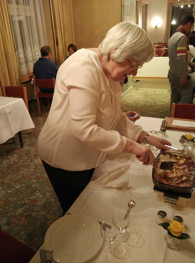 就是这位老奶奶,晚餐的时候还帮我们装菜。