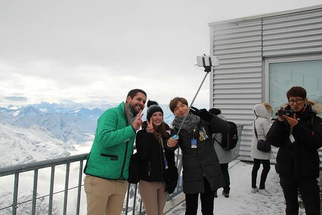 中间有2个观光点,列车会停车几分钟给大家到观景台看看山下的雪景。但是可能是内外温差有雾气,观景效果很差。