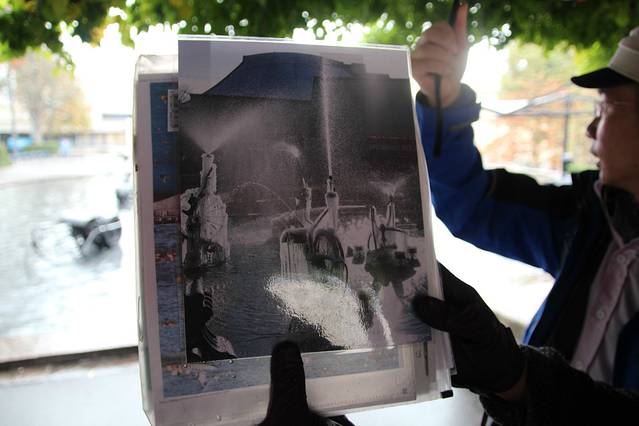 当地旅游局代表为我们展示冬天结冰时候的水池