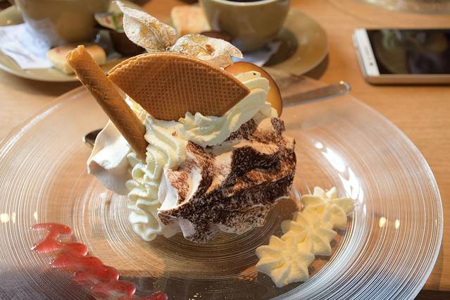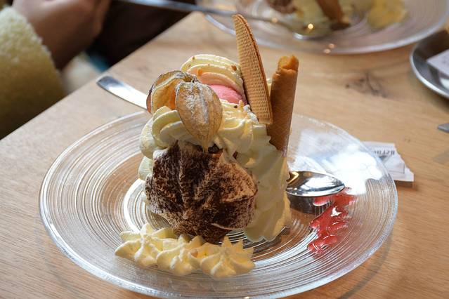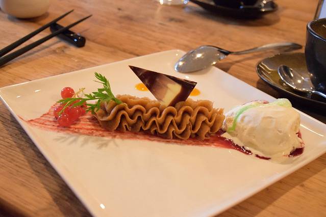 终于等到位了,这个像一坨屎的东西就是这里的招牌甜品。有点像饼干,味道偏甜,里面是雪糕。吃这个要陪茶喝才最好,不然会太腻了。