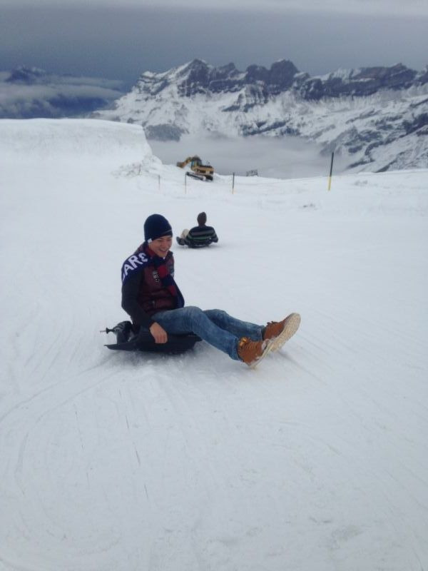 这个帅哥是洛伊克巴德的旅游局代表,一早在汽车站迎接我们,人很耐撕!他说要带我们到山顶上用午餐