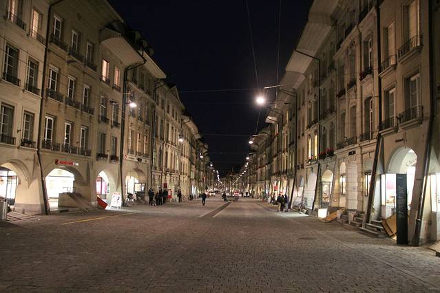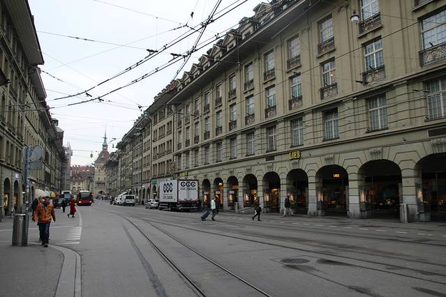 看到道路两边商铺的拱形门吗?里面是走廊,老奶奶说伯尔尼是一座在下雨天逛街也很方便不用打伞的城市。这里的建筑已经有几百年的历史了。