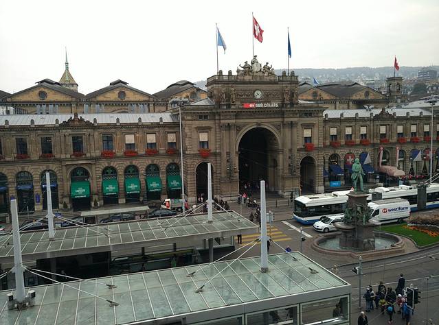 刚来到苏黎世是当地时间6点多,天才刚刚亮。乘坐机场到酒店的地铁,10分钟就到了。