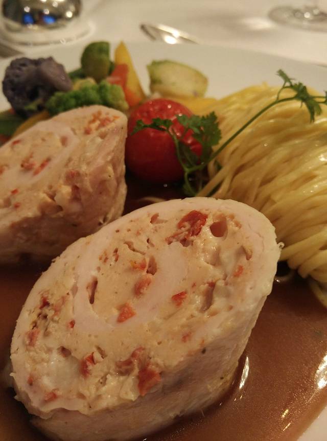 稍作休息之后,我们要去吃午饭咯,13个小时的飞机,再加上5、6个小时的行程,终于到午饭时间咯。餐厅是Kameha Grand酒店一楼的餐厅。门口停着一台玛莎拉蒂