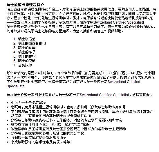 先帮主办方瑞士国家旅游局宣传一下:http://elearning-cn.myswitzerland.com/