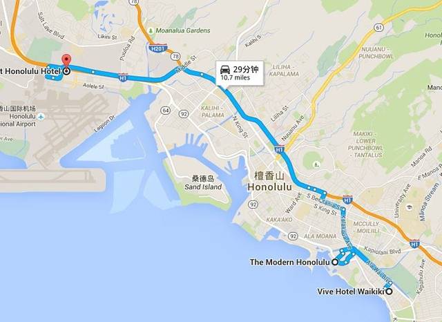 0730-0830 退房,开车走Ala Wai Blvd前往现代酒店,存行李