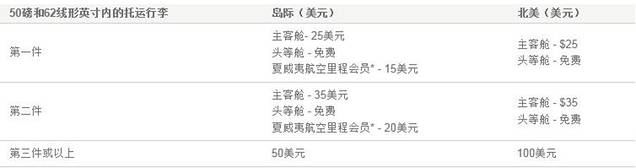 如果和我一样,定的是夏威夷航空,请事先在网站注册成为会员。首件托运行李为15USD,比非会员的25刀便宜很多。具体如下(美国国内航线):