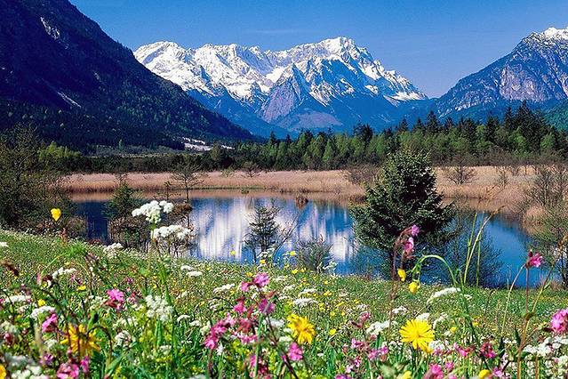 高山花园的一部分,池水和花海结合显得格外静谧