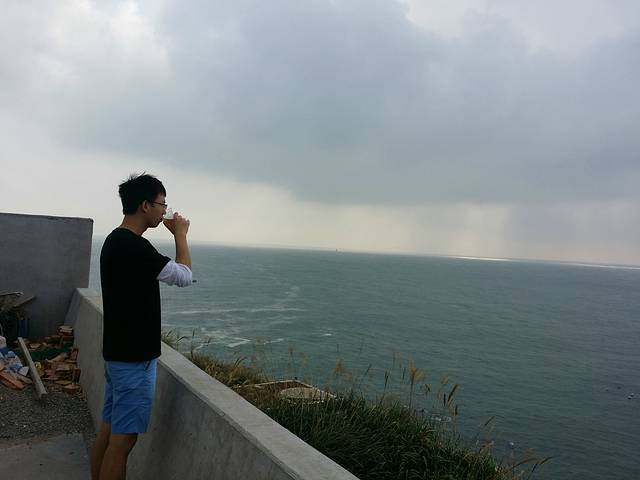 悬崖绝壁收费门口学长面朝大海喝水。我们没有买门票进悬崖绝壁,因为也没有特别大的想法想要去,就自己骑着车沿着海滨公路溜达。