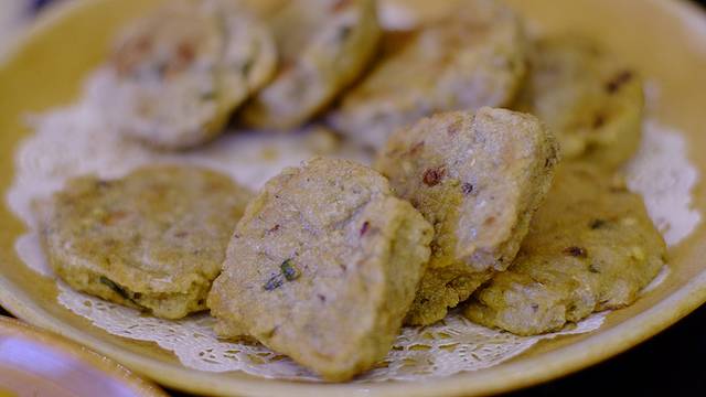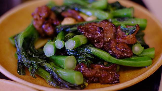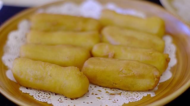 我们点了本地特色的陈皮鸭、煎鱼饼、菜软炒猪颈肉,再加炸牛奶作为点心,人均不到50,在景区里面而言真的不算贵。