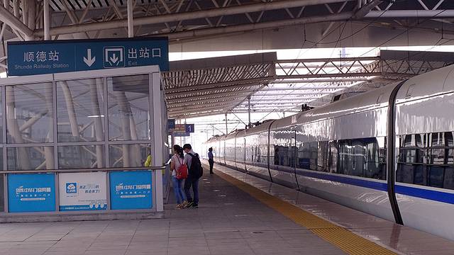 从顺德城轨站出来就有接驳车直达,打车的话也不用跳表,好方便。