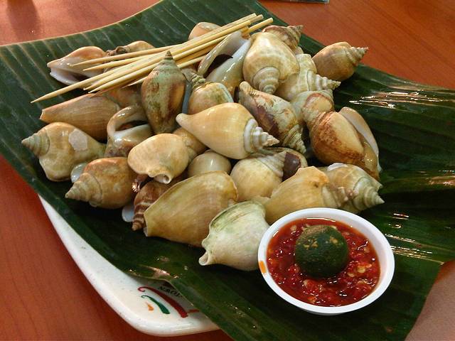生长在民丹岛和巴淡岛海域的海蜗牛,非常的鲜美多汁。这种蜗牛和我们平时见到的普通蜗牛并不一样,由于生长地域的特殊性,吃起来有独特的新鲜口感。鲜嫩多汁是它的特色,再搭配民丹岛上独有的特制酱料,绝对是一种不一样的美食体验,简直是人间美味,让人难以忘怀。