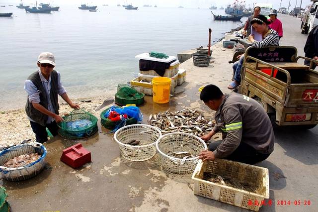 一篓篓的海鱼、海蟹、海螺、海虾,还有许多叫不出名字的海货,摆放在码头的两边,使得原本就不宽的码头顿时显得拥挤起来,那人头攒动的景象,酷似内地的农贸市场,只是浓浓的海腥味。