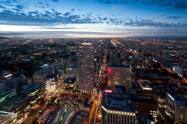札幌是个很大却很安静的城市,地平线尽头的方向是石狩和日本海,左边一片比较暗的是北海道大学校园。
