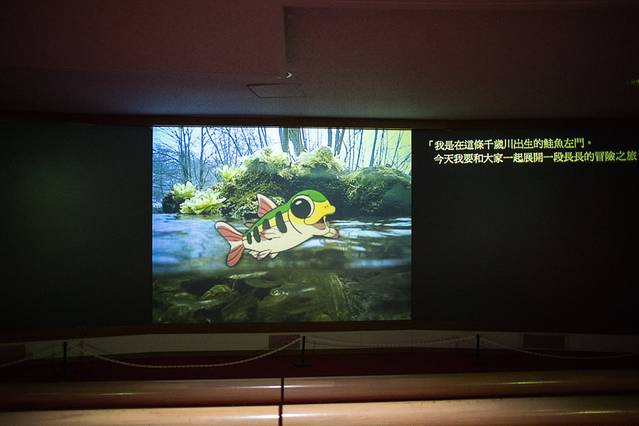 鲑鱼博物馆里播放的纪录短片,生动讲述了鲑鱼不平凡的一生。鲑鱼就是餐桌上经常说的三文鱼,在东北又被称为大马哈鱼,人们都知道鲑鱼是一种美味的食材,但鲑鱼其实是一种非常伟大的动物,它们诞生在河流的浅滩,幼鱼经过长途跋涉游到海洋,在海里经过3-5年的生活,还会记得出生的地方,不远万里回到故乡的河流里产卵,产完卵之后就走完了不平凡一生。它的生命就是不停的旅行,让人敬佩。