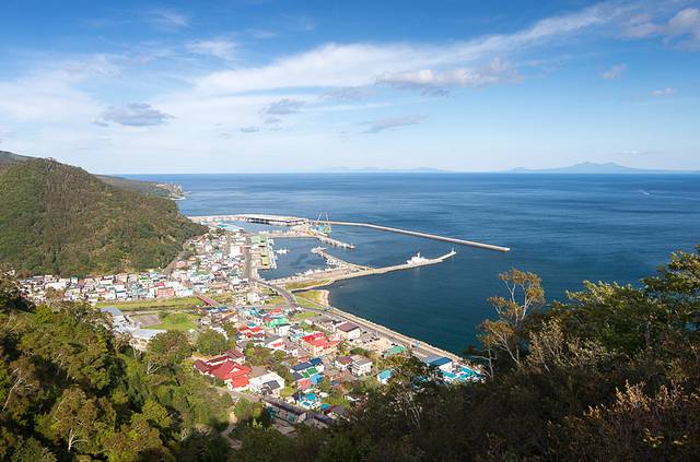 罗臼町全貌,渔港就占据了相当大的面积,足以可见渔业在罗臼的地位。