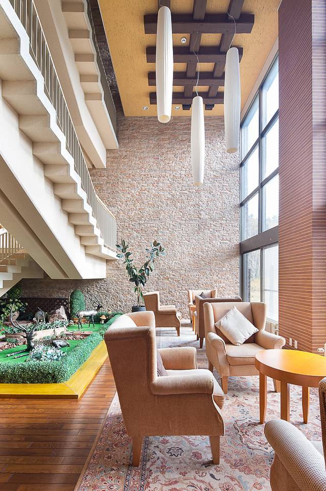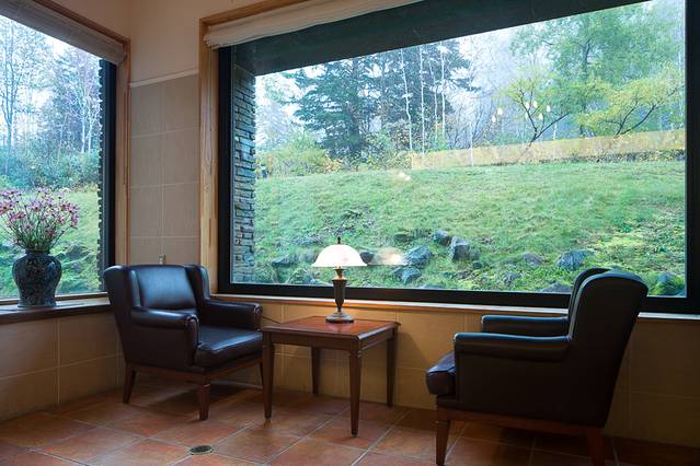 酒店带有欧洲山小屋的风格,碎石砌成的山墙和壁炉,配上木制地板和桌椅,想象一下冬天落地窗外一片白雪,坐在这里烤着火,壁炉旁边看书的感觉。鹿谷基本不接待团体,只有散客。冬天来旭岳滑雪的很多都住在鹿谷。推荐冬天来旭岳时可以到这里体验,风格与大雪山的感觉非常搭。