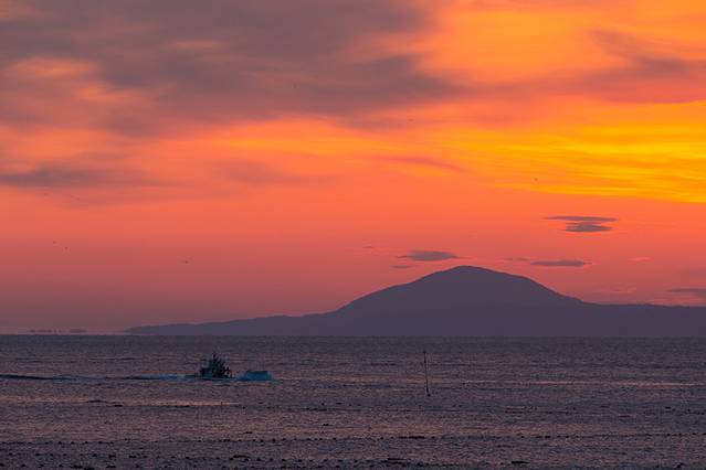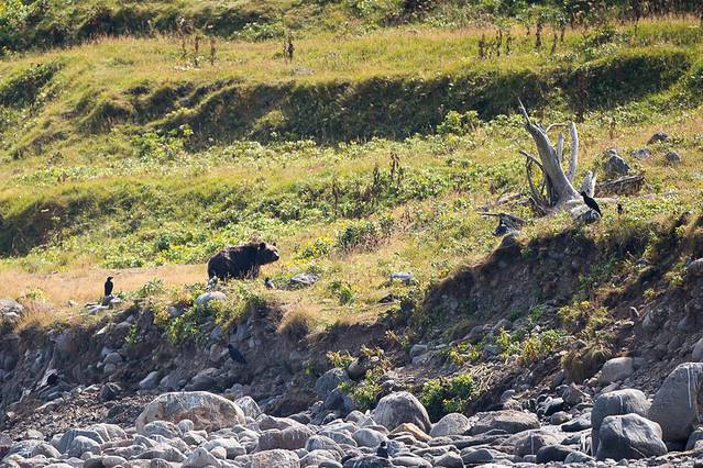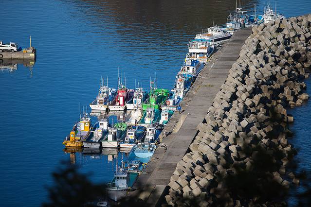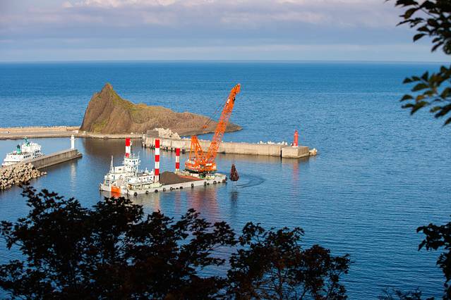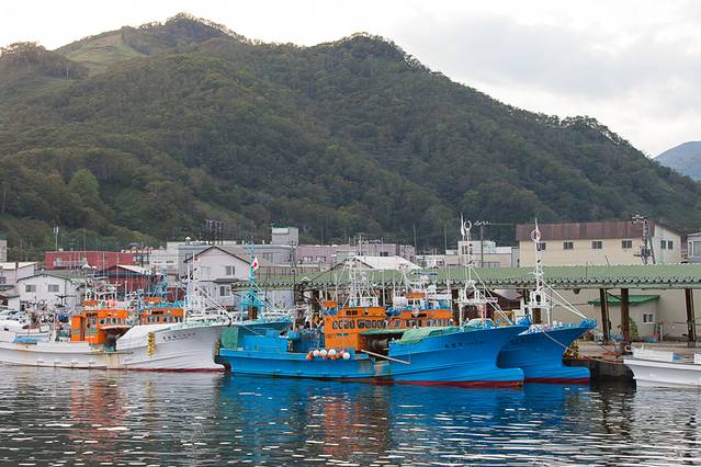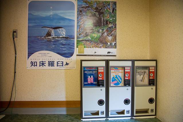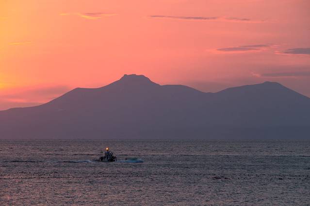 我们今天的计划是乘游览船一直到知床半岛的尽头海上观看知床岬,期间要在海上途径知床半岛连绵的山脉,全程往返需要近3个半小时。途中有一处河流入海口处经常有棕熊出没,现在正是驼背大马哈鱼(鲑鱼的一种)洄游的季节,在河口处会经常有棕熊来抓鲑鱼吃。我们会不会遇上熊大呢?带着各种期待,我们到宇登吕的一件事就是到知床野营场放好行李,准备好拍摄器材,然后再到海港边上的游览船公司,准备登船。
