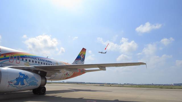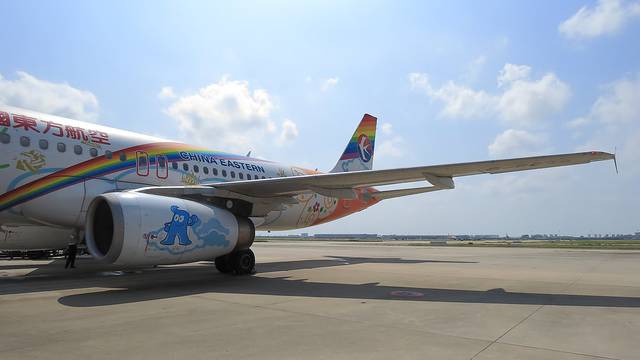 东航的飞机,机身很萌,不过还是上海世博的涂装,但仍然有很多乘客在拍照。