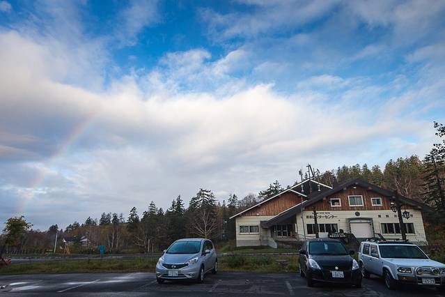 早上我们起了个大早,就是为了看看能不能看到大雪山主峰旭岳的峰顶,大雨过后空气很干净,天上也出现了彩虹,但是山间的云雾有点过多,旭岳峰顶方向还笼罩在一团云彩中。