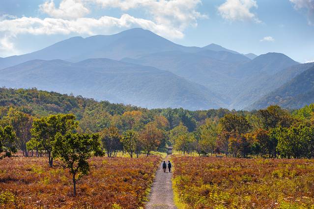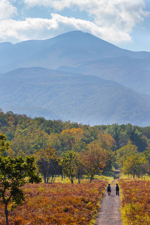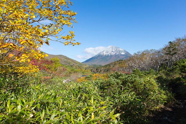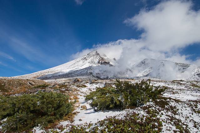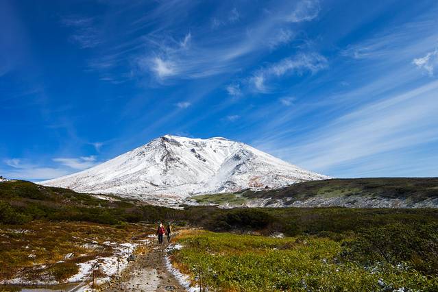 大雪山主峰旭岳是北海道最高峰,海拔可达2290米,是日本最早可以看到红叶的地方,整个山体的植物呈现出了明显的垂直分布特征,山顶以苔原、高山植物、偃松林为主,动物则栖息有狐狸、鼠兔、野兔、花栗鼠等。山顶有几条徒步路线,其中,到旭岳顶峰最上面的登山路,和前往裾合平方面(山间谷地,是一处天然高山花园)的旭岳穿越路线需要专业徒步登山装备,基本的姿见池徒步路线在两个小时内可以完成。