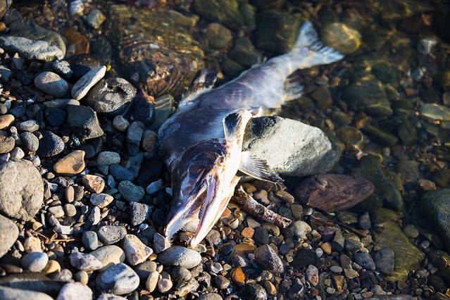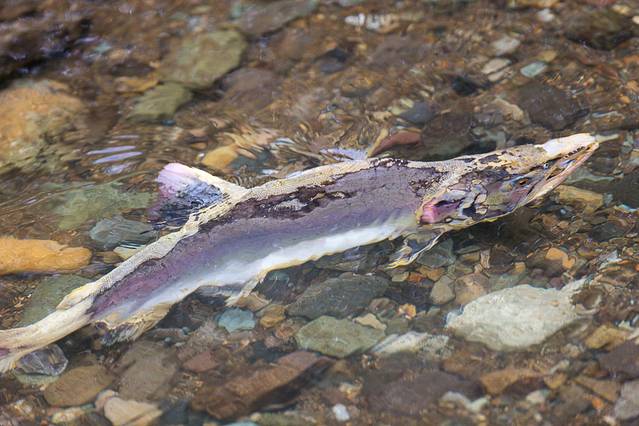 完成了繁殖下一代任务,失去生命的鲑鱼。鲑鱼是一种非常伟大的生灵。