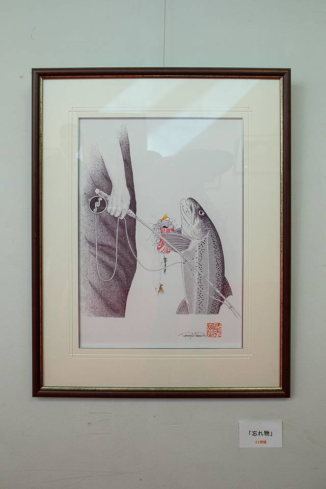 博物馆内还陈列了关于环保主题的绘画作品,人类对于鲑鱼的索取是不是有点过多了?