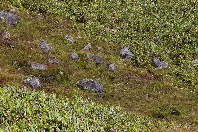 鼠兔喜欢在晨昏出来活动,快到中午了,我们俩四处张望,还是一直看不见鼠兔君的踪迹,看来北海道形象大使不轻易露面让我们拍呀。这次在旭岳停留时间有点短,我们以后还会再来拍的,同时,我们还想到大小兴安岭和长白山去找鼠兔,东北林区的高纬高海拔处也有鼠兔君分布的。小型火山湖姿见池与大雪山主峰旭岳。