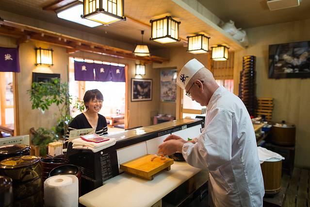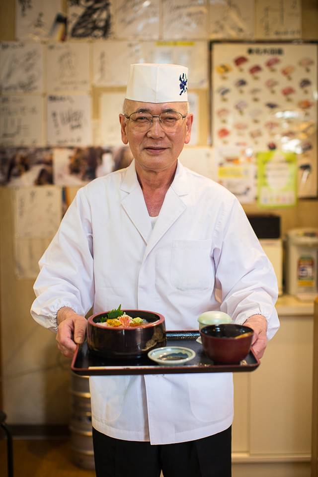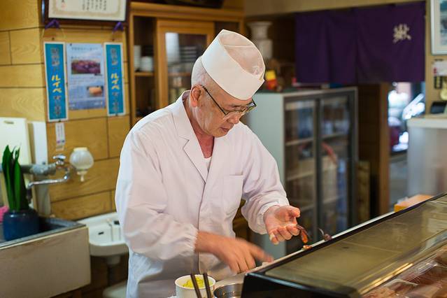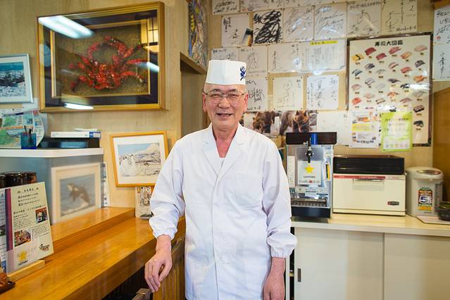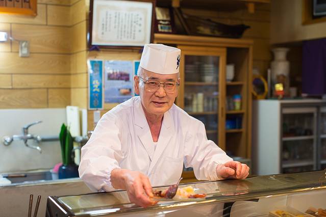 米其林北海道美食指南推荐餐厅,“寿司、乡土料理 鳅”的店主人。老先生是一位慈眉善目,技艺精湛的料理人。